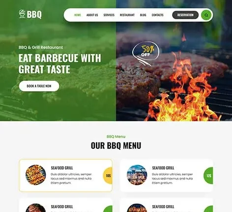 • BBQ restaurants can enable a menu. They can list and showcase various types of services. Can easily offer a table booking facility and showcase their team bios.