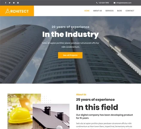 - Free Architect WordPress Theme is built with Elementor page builder but other page builders like Brizy, SKT builder, and Gutenberg editor also work better.
