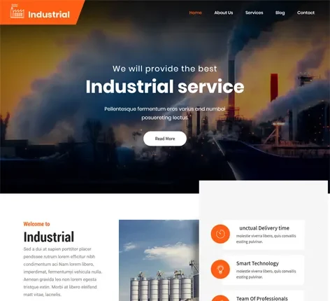 - SKT Industrial Lite is a fresh and proficient looking free industrial WordPress theme constructed for factories, industries, and manufacturing type of businesses