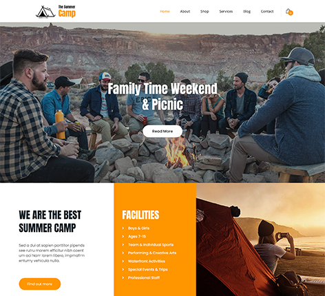 - Thus, the Summer Camp is an all-rounder free Kids Camp WordPress theme that is packed with many features and inbuilt homepage demo content.