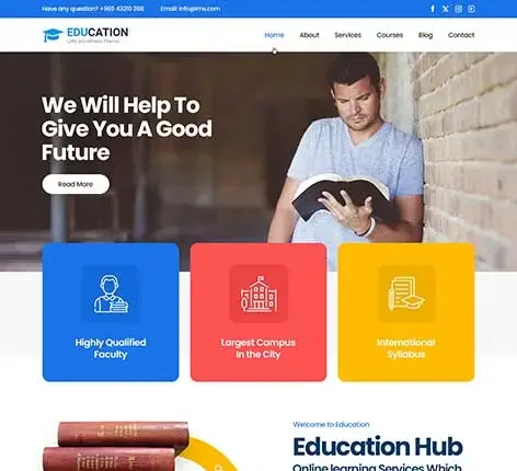 A structured and professional layout ideal for schools, tutoring centers, and educational programs. Its responsive design, well-organized sections, and clear visuals make it perfect for presenting courses, faculty, and enrollment information.